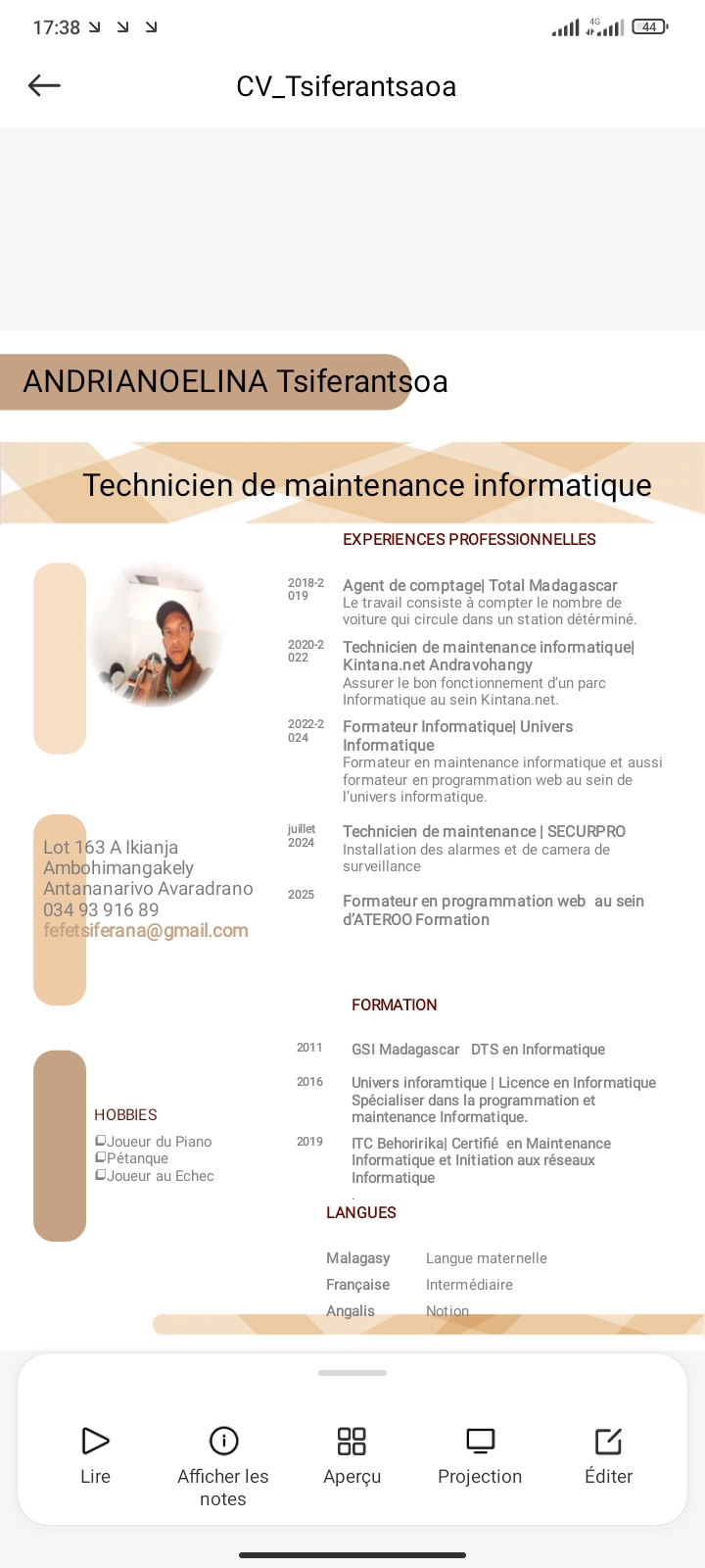 Pour contacter ce candidat, envoyez un e-mail à fefetsiferana@gmail.com